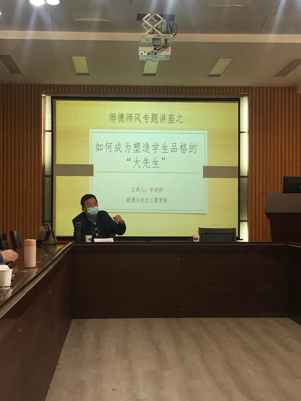为进一步推进学院师德师风建设活动的深入开展,加快构建教师思想政治教育、师德师风建设和业务能力有机统一、相互促进的新格局,yl23411永利集团官网邀请辛洪祥老师于10月27日下午在工程中心9号楼三楼会议室开展“如何成为塑造学生品格的‘大先生’”师德师风专题讲座。讲座由梁绍华院长主持,学院全体教师参加。