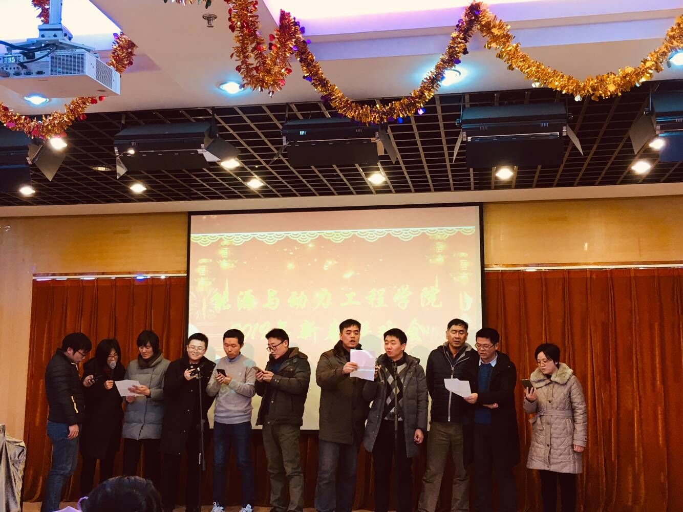 1月18日下午,yl23411永利集团官网教职工于东区教职工活动中心欢聚一堂,共同演绎2019年新春联欢会。联欢会由陈明老师和宋莹老师主持。王院长代表领导班子致辞:在各位老师的共同努力下,2018年能动学院各项工作都取得了很好的成绩,希望大家再接再厉,再创辉煌,同时提前祝大家新春快乐,工作顺利,阖家欢乐!