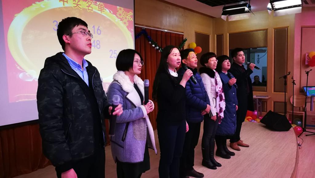 本次迎新春联欢活动以工会小组为单位准备节目,教师们准备的歌曲独唱、大合唱、诗朗诵使整个活动高潮迭起,掌声不断,期间穿插的抽奖活动,更让人充满期待,给活动增添了无尽的喜气。