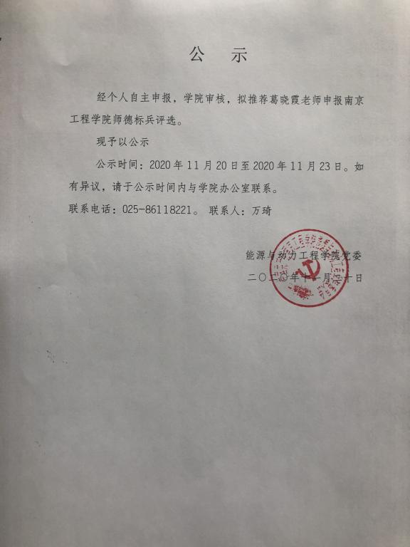 yl23411永利集团官网2020年师德标兵推荐人选公示
