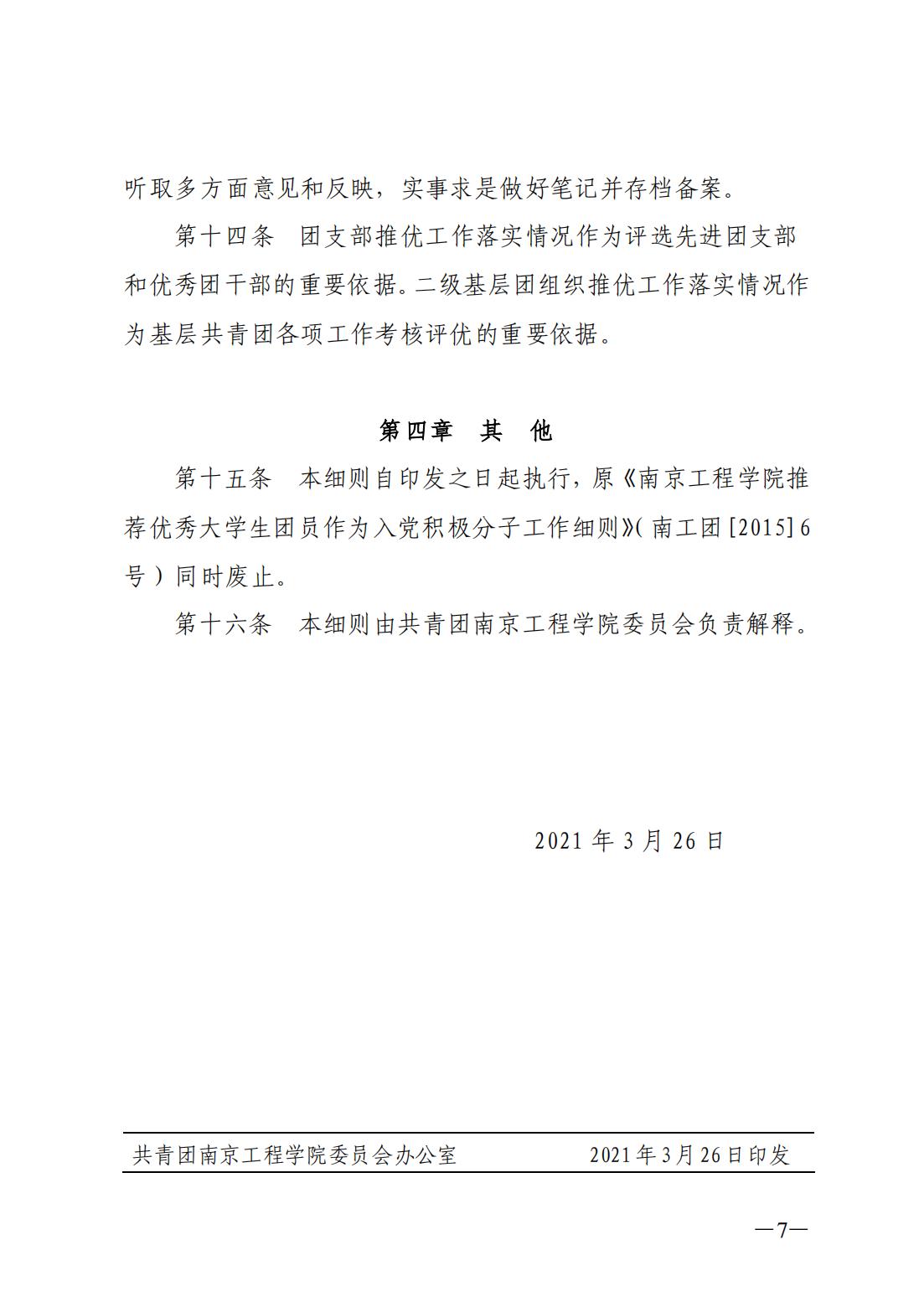 关于印发《南京工程学院推荐优秀大学生团员作为入党积极分子工作细则》的通知