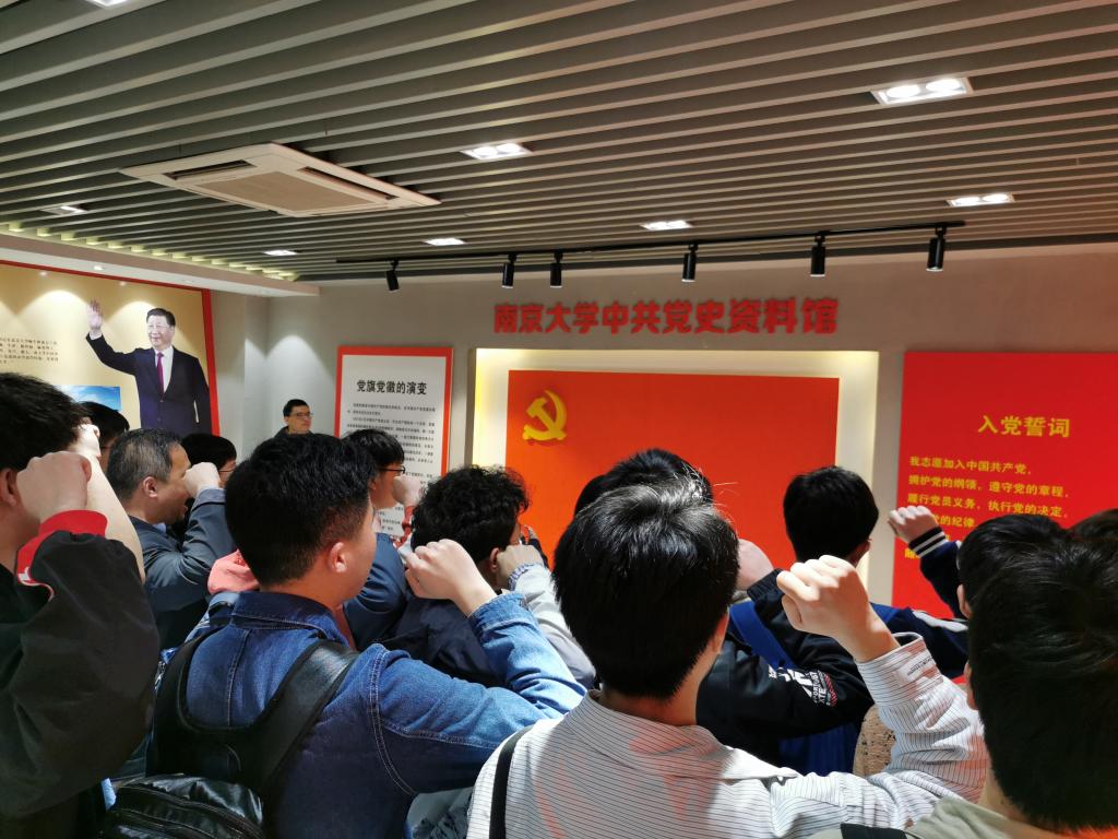 南京大学中共党史资料馆新馆于2018年6月29日揭幕,是全国唯一以“党员原始档案资料”为展品的党史馆,馆内所藏资料达10万多卷(件),2018年初入选江苏省首批“党员教育实境课堂示范点”。在讲解员的引导和讲解下,学院师生参观了馆内收藏的党员干部个人资料,抗日战争时期的入党志愿书,延安整风运动时期的党员鉴定、党员思想自传,解放战争时期的土改鉴定、三查三整鉴定,不同历史时期的支部文献、党员课本等。馆藏中的三类党员群体:少数民族党员、夫妻党员以及党员群体中的外籍党员引起了同学们的极大兴趣。他们抛弃族别、国籍界限,无畏牺牲,在中国共产党的带领下,毅然投入到伟大的抗战中,充分说明党具有强大的号召力和凝聚力。
