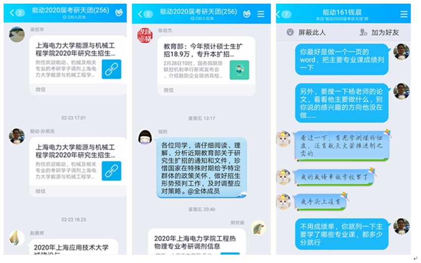 整合资源,着力平台搭建。组建专题QQ群,及时进行“空中宣讲”,解读国家有关政策;充分依靠、挖掘专业教师和校友资源,将信息“送上门”,实时发布第一手考研复试、调剂动态。自2月以来学院已累计分享、发送2020届毕业生考研有效信息80余条;一对一咨询辅导90余人次。