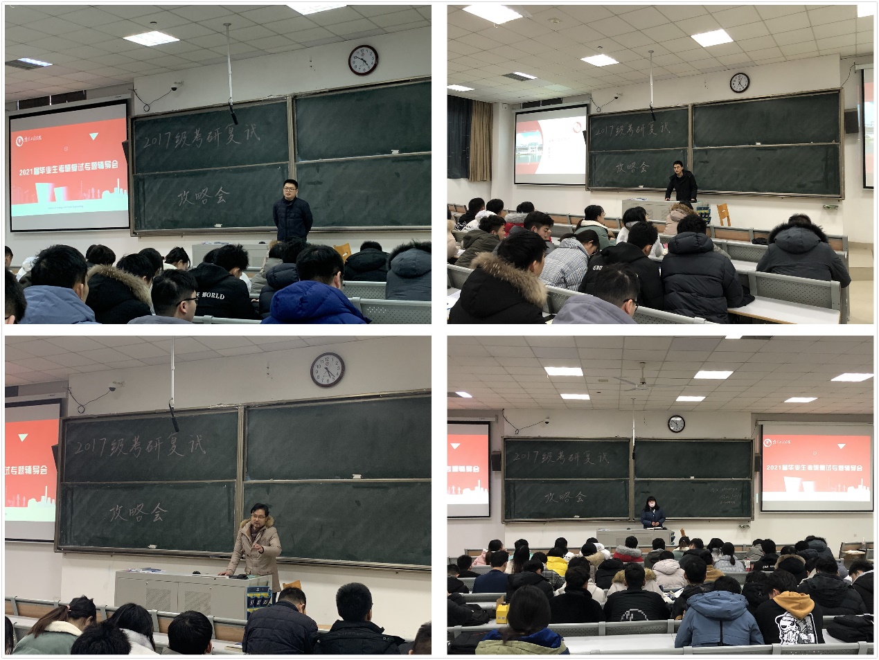会上,各系考研辅导教师从专业课复习、面试策略、院校与导师选择等方面着手,与参会同学分享交流复试备考经验。老师们建议复习要有侧重点,相较于初试阶段,复试专业课考察内容更为灵活,贴近实际生活,偏重应用层面,同时加强日常英语听说读写能力的练习,培养英文交流语感。“同学们要精准定位自身弱项,巩固专业基础课程的学习,弥补学业上的薄弱之处”。在面试策略方面,老师们针对考生仪容仪表、举止言谈、院校出题思路等内容提出建议,同学们不但要个人外在形象,而且要突出个人工程实践能力,复习时做到理论与实践相统一,不断丰富自身知识储备。该院学生工作相关负责人围绕复试与求职的关系提出建议。他鼓励同学们要保持良好心态,做好两手准备,一方面了解研究生招录流程、调剂方法,一方面抓住春招良机,尽快选择好职业方向。