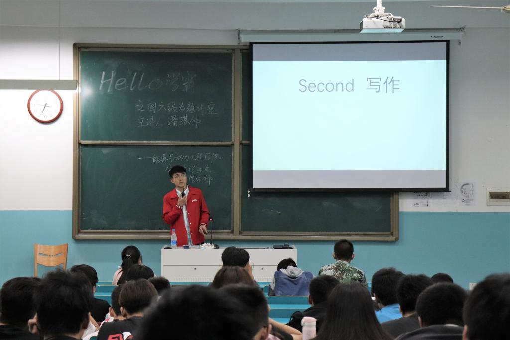 讲座由学院潘琪伟同学主讲,潘琪伟同学在英语学习方面成绩优异,颇有心得,曾获南京工程学院第九届翻译大赛(笔译)一等奖。本次培训为学院低年级、英语学习存在困难的部分同学分享四、六级考前复习、应试技巧的相关经验。讲座伊始,潘琪伟同学深入剖析了四、六级考试的题型,将四、六级考试分为四大模块并有针对性地提出了分块复习,重点强化的复习建议。他还强调,英语的学习是需要以兴趣爱好为动力,以习惯养成为支持的,他将自己复习应试时的一些“干货”小技巧分享给大家。讲座最后,潘琪伟同学向学弟学妹们推荐了几部优秀的欧美影视作品供大家观摩学习。现场气氛热烈,参加培训的同学们纷纷表示受益匪浅。值得一提的是,该活动采用了线上直播的形式,直播观看人次达数百次。这是该院探索“互联网+”工作新模式做出的尝试。