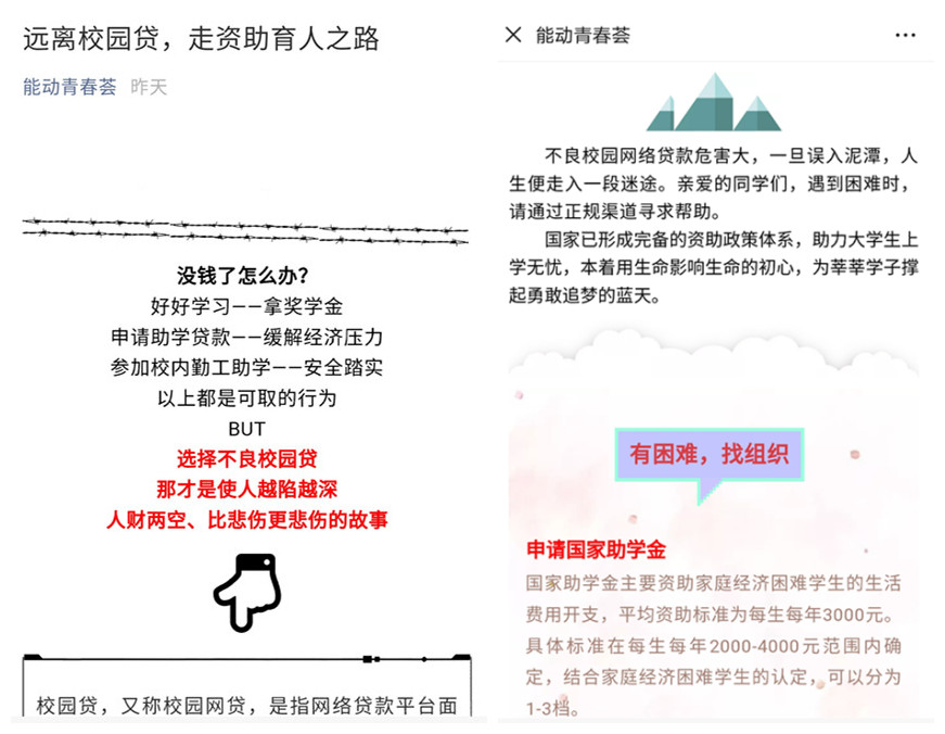 为强化资助工作的育人效果,积极构建“以诚信为荣”的校园文化氛围,学院依托微信公众号“能动青春荟”,广泛宣传资助政策,普及征信、金融等相关知识,倡导学生树立诚信观念。鲜活的案例、生动的动态图片,让广大学生在潜移默化中了解国家的资助政策,感受诚信的内涵和意义,使诚信教育主题活动更接地气。